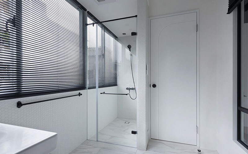 採用滑軌橫向開啟,適合空間有限的浴室設計,不佔門扇開啟範圍,讓小空間也能擁有乾濕分離的舒適體驗。